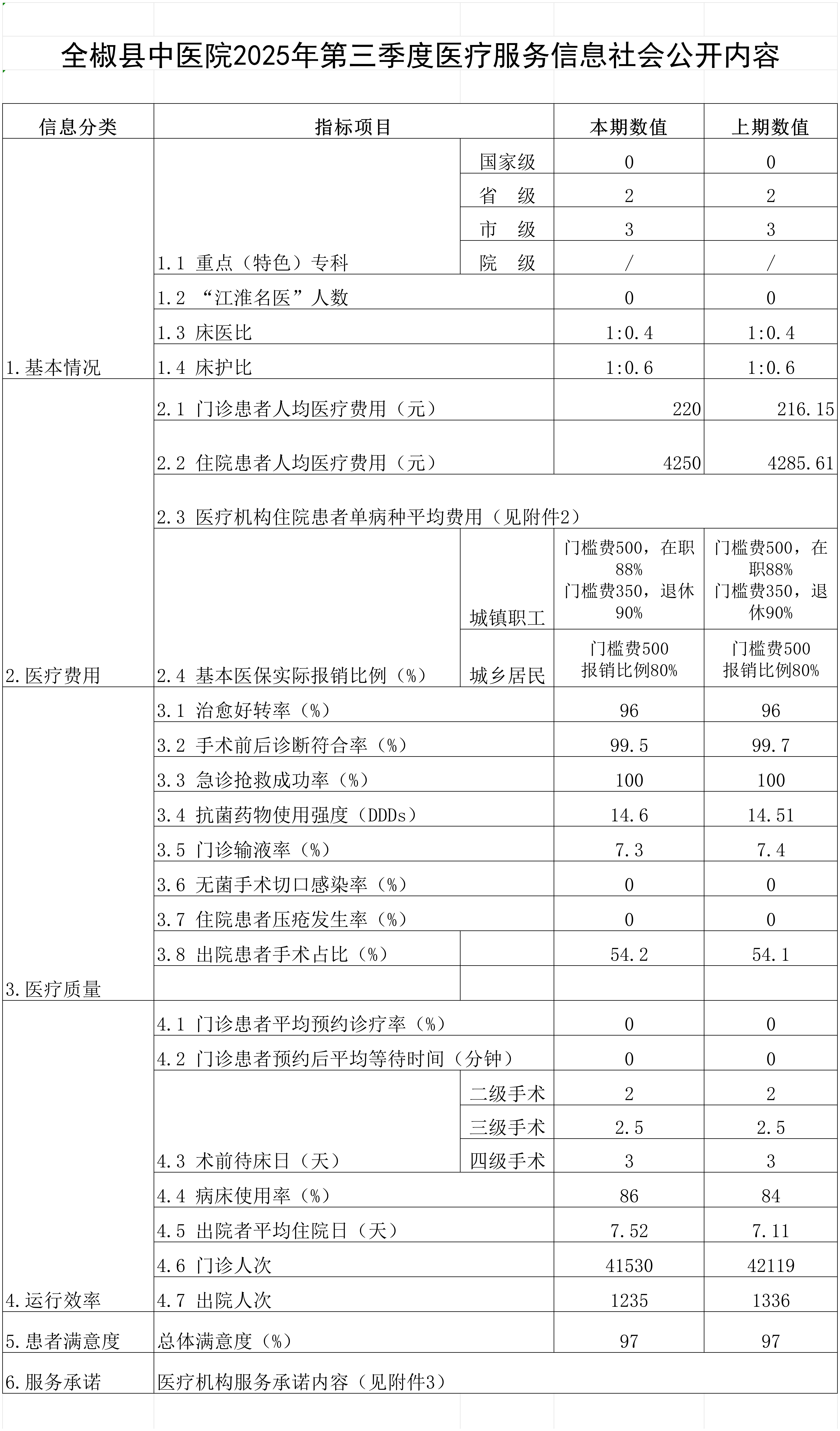 全椒县中医院2025年第三季度医疗服务信息社会公开内容