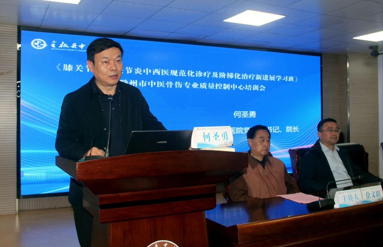 安徽中医药大学第一附属医院骨伤科主任周正新教授,全椒县卫健委副主任、县疾控局局长茆恩敏,全椒县中医院党委副书记、院长何圣勇出席培训班开幕式并致辞。开幕式由全椒县中医院副院长徐文联主持。