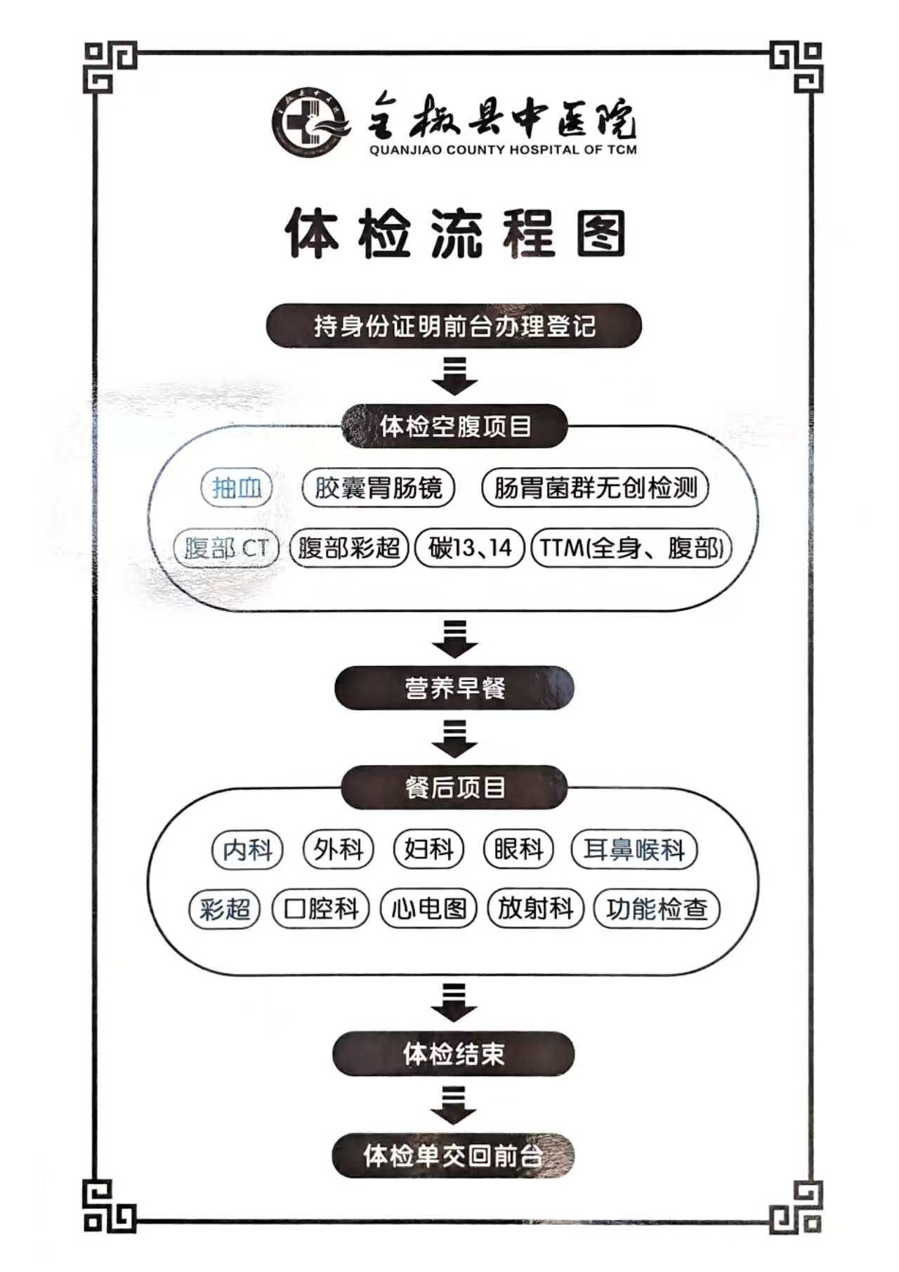 全椒县中医院体检流程图